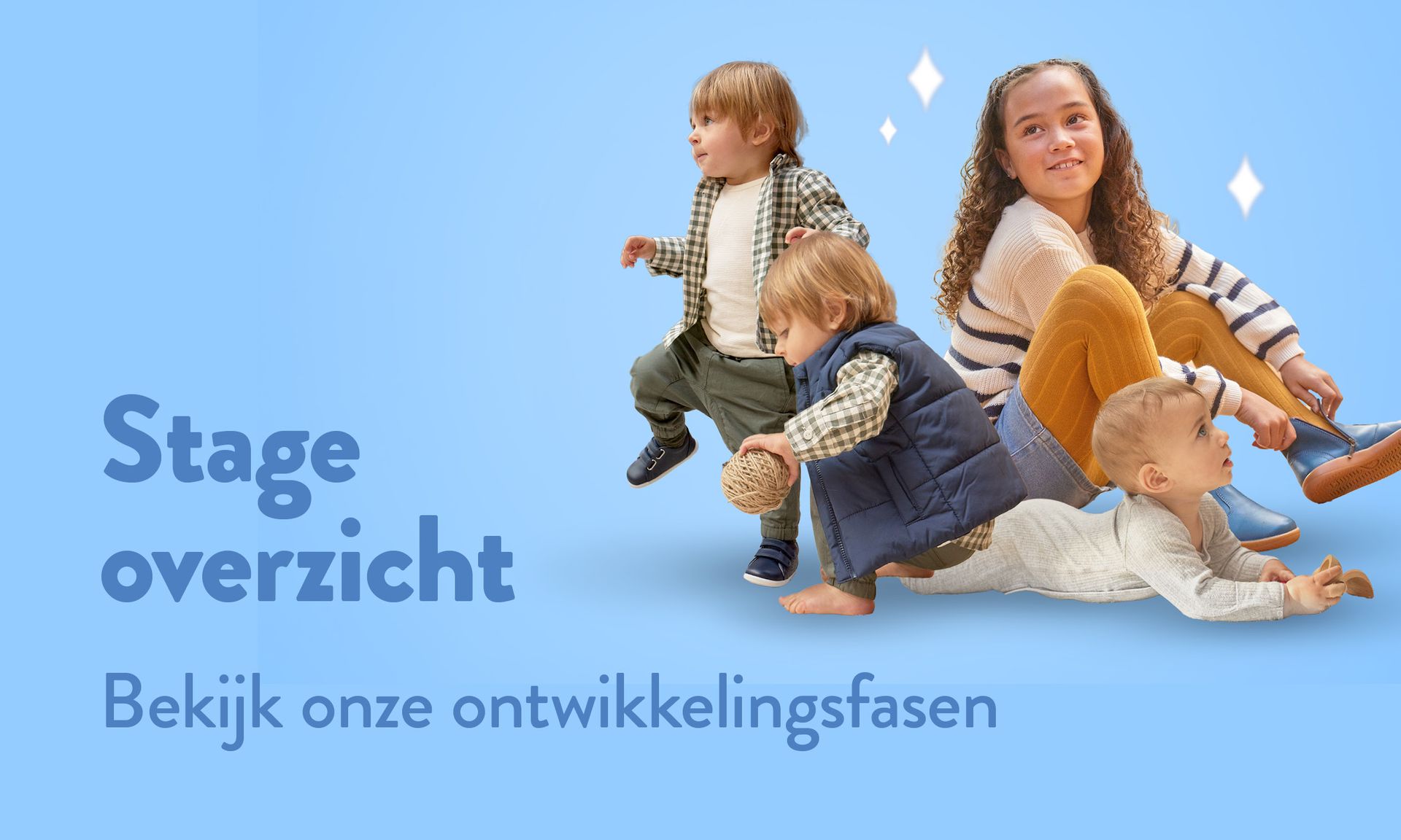 Kleine voetjes groeien en veranderen voortdurend. Daarom ontwerpen we onze schoenen voor elke groeifase waarin je kind zich bevindt, om comfort, bescherming en bewegingsvrijheid te bieden. Naarmate je kind groeit, veranderen er drie dingen: hun voeten, hun bewegingen en hun behoeften. Het is dus heel belangrijk voor hun toekomstige voetontwikkeling dat ze voor elke fase de juiste schoenen hebben. Bobux schoenen zijn ontworpen vanaf de zool omhoog, om de voeten en bewegingen van je kind te ondersteunen terwijl het door elke fase heen groeit. Hieronder beschrijven we de vijf ontwikkelingsfasen.